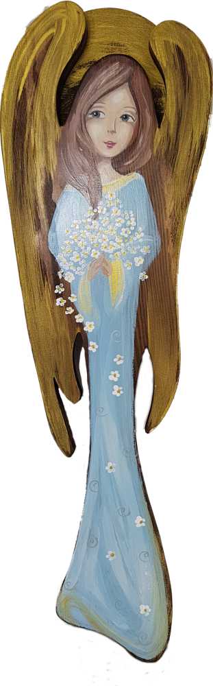 Anioł błękitny ze stokrotkami.