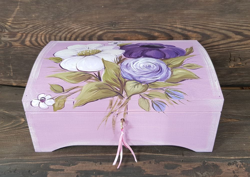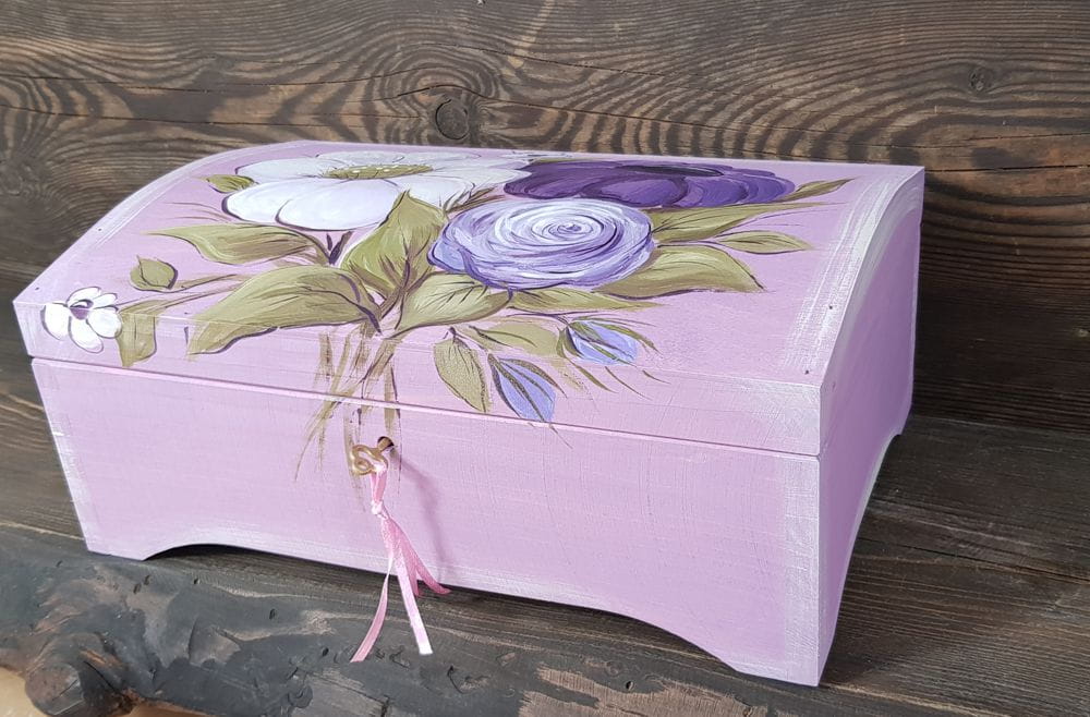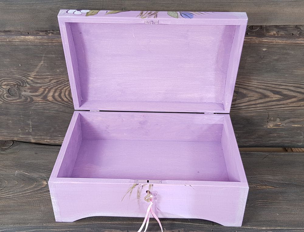 Kuferek z kluczykiem wykonany jest z wyselekcjonowanego, sosnowego drewna.